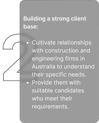 At Globalise, we are more than just a recruitment agency; we are your strategic partner in talent acquisition. With a profound understanding of the dynamic demands within the Australian construction and engineering sectors, we have fine-tuned our approach to deliver tailored solutions that precisely match your organisation’s needs.